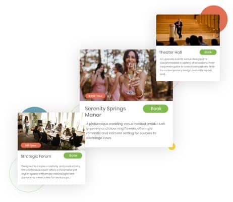 Maksimer sjansene for at kunder velger din plass ved å vise den frem på nettstedet ditt. Presenter arenaene dine gjennom et visuelt tiltalende romgalleri eller bookingkalender som er sømløst integrert med merkevaren din.